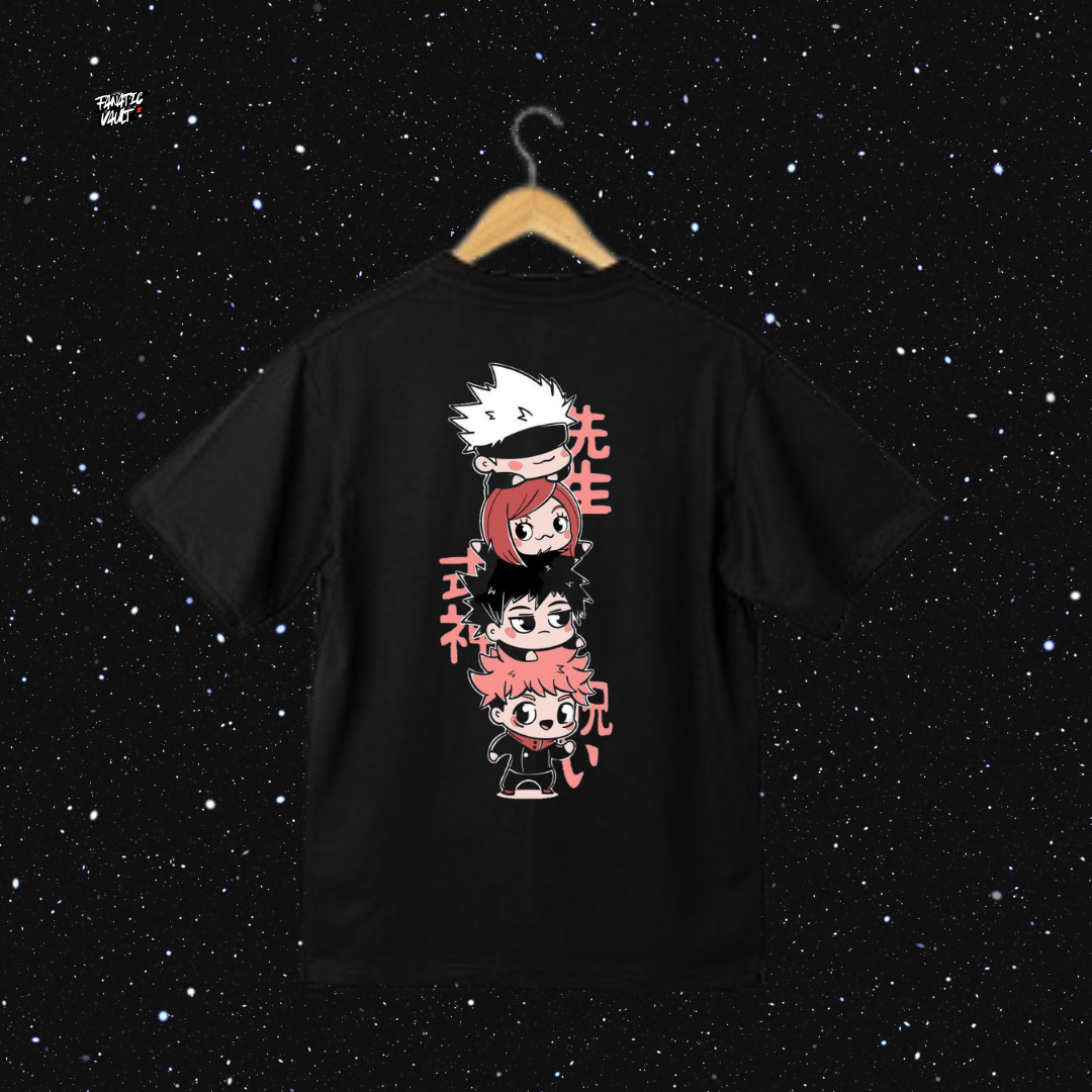 Eleva tu estilo al rango de hechicero de grado especial con esta camiseta oversize inspirada en Jujutsu Kaisen, diseñada para quienes viven con actitud, fuerza y un toque de caos.