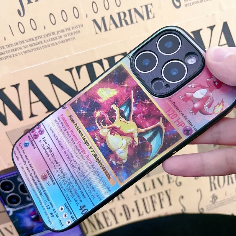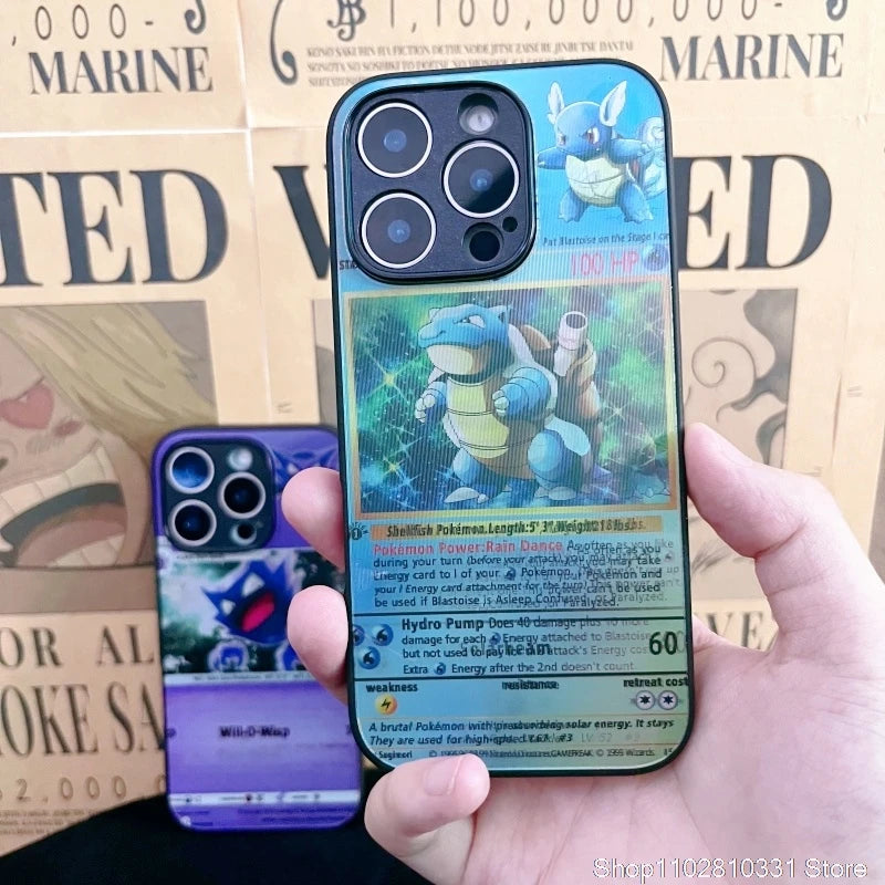 3D Grating Card Pokemon Charizard Phone Case for iPhone 16 15 14 13 11 12 17 Pro Max Plus Mini Air Blastoise Venusaur Back Cover
