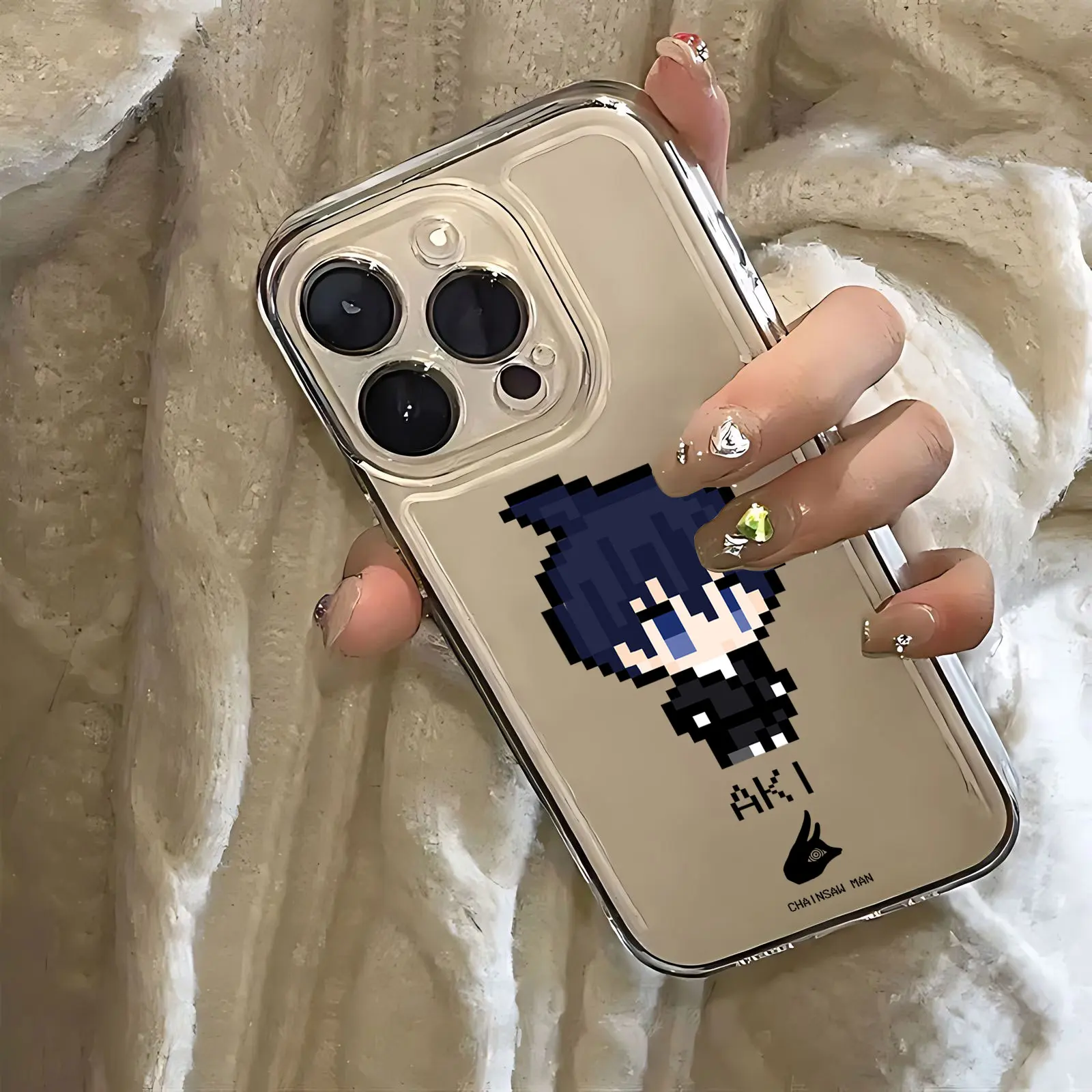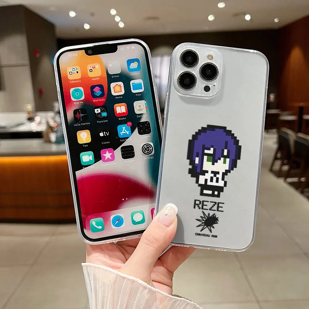 Pixel Cartoon Chainsaw Man Hot Phone Case For iPhone 16 15 14 13 12 11 Mini Pro Max X XR XSMax 7 8 Plus SE20 Transparent Cover