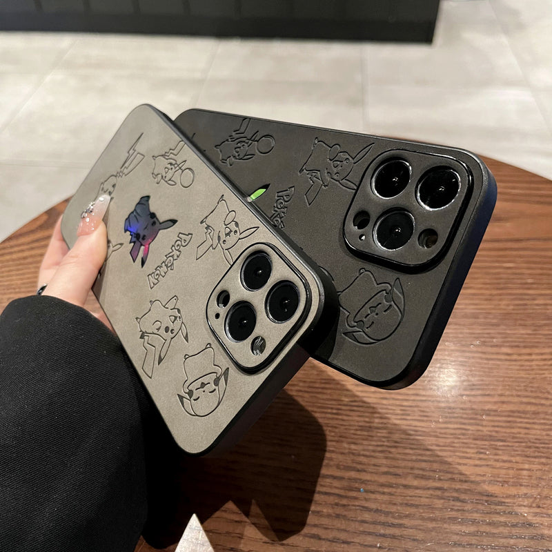 Pocket Monsters Pokemon Pikachu relief laser Leather Phone Case For iPhone 15 14 13 12 11 Pro Xs Max X Xr Xs 7 8 Puls Soft Cover